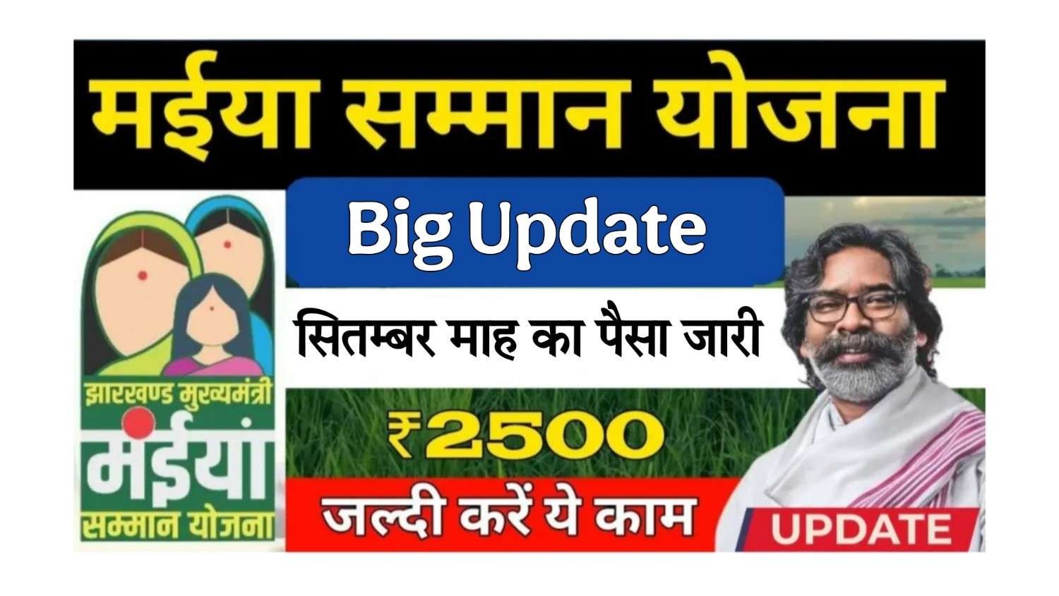Maiya Samman yojna Big Update 2025 : मुख्यमंत्री मईया सम्मान योजना की सितम्बर माह की सम्मान राशि कल से महिलाओं के खाते में जाना शुरू हो जाएगी। महिला बाल विकास एवं सुरक्षा विभाग के द्वारा राज्य के सभी जिलों को दशहरा से पहले ही लाभुकों को सम्मान राशि के रूप में 2500/- सीधे भेजी जाएगी … Read more